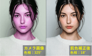 映像・写真の白目(結膜)の色相解析と、顔肌色の自動補正を行う色解析AIを導入。撮影環境やオートホワイトバランスによる色変動を補正し、遠隔でも診療に用いる色の再現を実現。